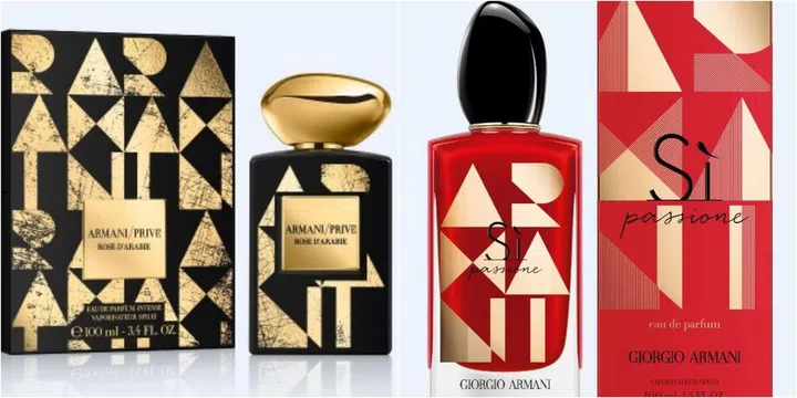 Giorgio Armani Beauty 高级香水殷红色热情洋溢的Sì Passion和沉稳知性的Rose D’Arabie都在这个佳节穿上了“圣诞装”,贴上了金片的瓶身犹如穿上了Giorgio Armani高级服饰一样,婀娜多姿。