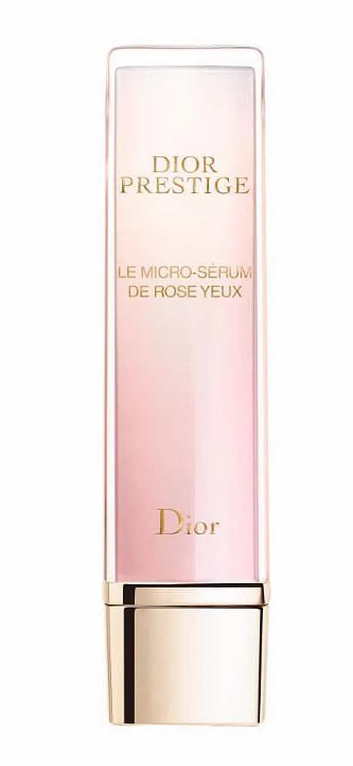 迪奥奢华系列(DiorPrestige) 的花秘瑰萃玫瑰眼部精华(Le Micro-Serum De Rose Yeux)采用生长在峭壁的英国野生格兰维尔玫瑰作为主要原料,这种玫瑰的生命力非常强,品牌把它们移植到法国,并采取仿自然生态的手法培育,从中萃取格兰维尔玫瑰的活性分子作为花秘瑰萃系列产品的主要灵魂原材料。这款眼部精华是品牌首次使用多维瓷珠的设计,打开瓶盖之后就会看到这些滚珠,按压管身挤出适量精华,再利用这些可360度转动的滚珠按摩眼周,就能刺激血液循环,增加吸收力,这个按摩动作加上精华霜的功能,能有效淡化眼袋达到舒缓肌肤压力的功效。