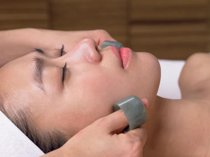 美容师采用韩国玉指环按摩脸部,提升血液循环,让肌肤可以充分吸收脸上的人参系列产品。产品的淡淡地人参香气萦绕于室,有安神静心的作用。做完后脸庞水嫩滋润,一扫之前的疲态。