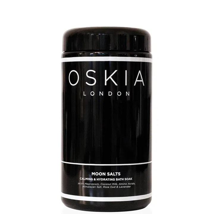 英国有机护肤品牌Oskia的浴盐有个浪漫的名字——Moon Salts。核心成分含有镁、椰奶、氨基酸、喜马拉雅粉盐、玫瑰沉香和薰衣草,水中溶解后呈乳白色,有助放松心灵,柔嫩肌肤。其中镁也有助放松肌肉,促进睡眠,睡前泡一泡,提升黄金美容觉的质量。