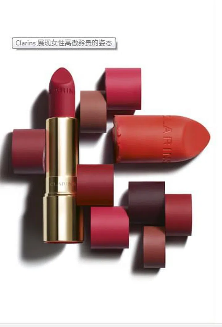 Clarins 第一支哑光雾面唇膏Joli Rouge Velvet面世,此唇膏含有崭新配方Velvet Booster + complex,能够让唇妆维持长达四小时显色,同时加入杏子油,一改一般雾面容易导致唇膏干燥的不适,滋润双唇并且高效保湿。它容易上色,且让双唇看起来饱满。