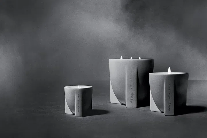 AESOP与Rick Owen 的联乘之作让人耳目一新,以他最喜爱的芫荽籽香氛贯穿整个系列,打造了淡香精、香氛蜡烛、洗沐护理旅行组。这次合作,并不只是把双方的标志印制在商品包装那么简单,而是抽丝剥茧,找出对方的独特性,并加以解构重组,以独特的面貌呈现。