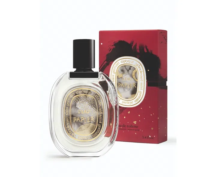 知名香氛品牌Diptyque与中国书法艺术家黑凹(Ao Hei)联手,为纸墨之水(L’Eau Papier)换上限量包装。纸墨之水灵感来源正来自2000多年前发明的造纸技术。限量版的香氛瓶身,采用了金色设计图案, 黑凹透过苍野有力的笔触,以金闪墨水书写出“龙”和“纸”二字,同时饰以金箔,与瓶身上的金色浮雕标志相呼应。