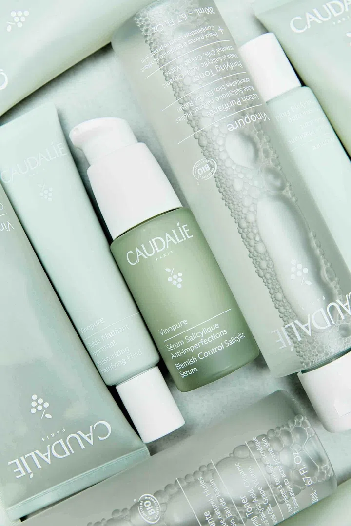 Caudalie旗下Vinopure系列升级,含有天然水杨酸、冬青叶提取物,温和去角质、清理毛孔;有助于收缩毛孔的烟酰胺;具备抗氧化功能的多酚以及六种植物精油,平衡肌肤油脂分泌,改善痘痘问题。