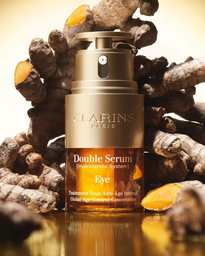 Clarins Double Serum 口碑极好,本月份品牌推出同款眼部精华液Double Serum Eye,它含有 96% 天然配方与13 种植物提取物,除了主角姜黄提取物,也添加了具强化肌肤功效的有机野山萝卜,强眼周肌肤的保湿、防御、再生等功能,从而达到抚平皱纹、改善黑眼圈与浮肿等问题。 它所含的抗污染复合物还能保护皮肤免受蓝光的伤害。双重配方质地轻盈舒爽、易于吸收,不残留粘腻感。