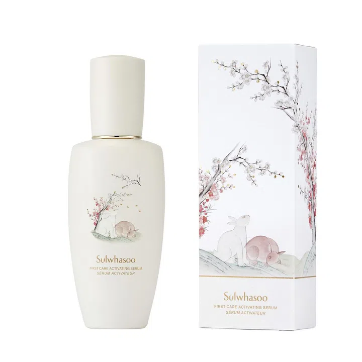 韩国高级护肤品牌雪花秀(Sulwhasoo) 向来将韩国传统文化巧妙融合在包装上,将传统之美延续并且发扬光大。兔年,品牌人气产品润燥再生精华(First Care Activating Serum)的白瓷瓶身绘上了充满禅意的梅花与玉兔,象征吉祥幸福,优美得像一幅画。