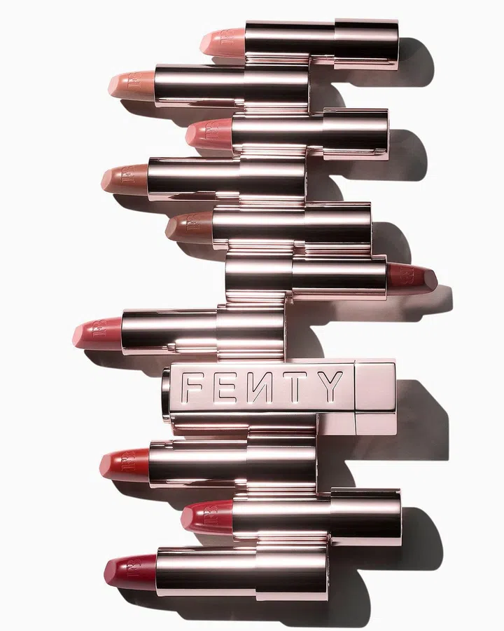 由Rihanna 主理的Fenty Beauty 再推新作,全新Fenty Icon 系列唇膏加入了维他命C与E、玻尿酸和氨基酸,不但能够为双唇长效保湿,同时也有丰唇的效果。这系列柔雾唇膏一共有十个色号,七款自然色以及三款红色,可依不同场合做搭配。