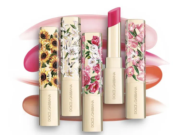 Dolce & Gabbana Beauty 推出限量款Sheerlips润唇膏加入了地中海海洋萃取物,除了润色也具备卓越保湿功效,能够抚平唇纹。包装更是延续品牌一贯的华丽风格,细长的唇膏管盖上印制了各色花卉,美丽耀眼,四种不同色号分别印上四种花卉。