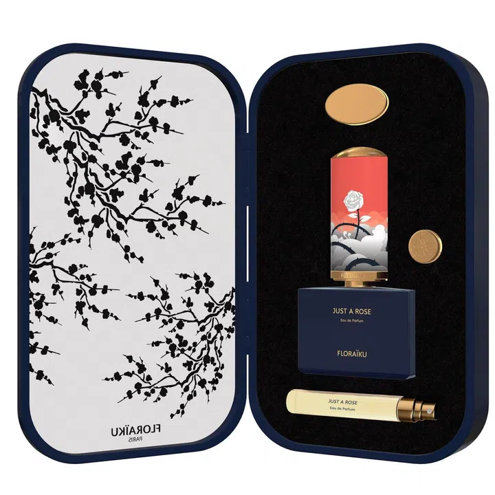 由Memo Paris 创办人另创的精品香水品牌Floraiku 拥有非常迷人的概念,以日本花道、茶道和香道等为基础,每一款香水会依据香味和意境搭配一首俳句。另外,盒装套组的设计也以日式便当盒为蓝图;有趣的是方形香水瓶的长形(见图)的盖子取下之后,可以一盖两用,把旅行装香水放入其间,它就是一个外盒。每一款香水的盖子上都会因为香味不同而绘上不同的图画,独特又精致。