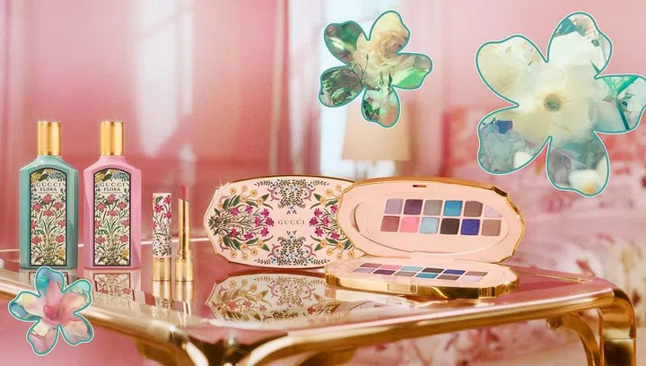 Gucci Beauty 新作12色Palette Beauté Des Yeux Gorgeous Flora眼彩盘采用与香水一样的同款花卉设计,盛放的各花朵彩绘,既复古又华丽典雅,12色眼彩盘包括了大胆靓丽的粉红、蓝以及自然色,饱和度高且容易搭配,不管是白天外出还是出席晚宴都能够自由搭配。