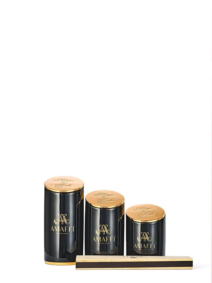 顶级香水品牌Amaffi自创立以来坚持采用全天然原料纯手工制作香水,即便香水瓶也是在德法两国匠心打造。对待香氛蜡烛,品牌同样严谨。旗下一组三款香氛蜡烛采用高级矿物蜡以及精心调配的顶级香氛,散发出典雅的木质香调。值得一提的是,每一个蜡烛容器均由法国知名匠人采用利摩日瓷器和黑搪瓷打造,表面的标志以自然金漆手绘而成,每一个细节都让人心醉,它也是室内角落最美的装饰品只要。