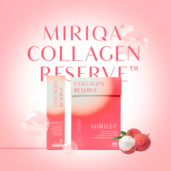 MIRIQA® 推出的全新口服美容啫喱Collagen Reserve™ 属于荔枝口味,清新好入口,方便日常保养。配方结合水解海洋胶原蛋白、黑晶玫瑰洛神花、玻尿酸、维他命C和烟酰胺,从内在促进肌肤弹性、保湿和修复。主打提升肌肤亮度与细致度,适合希望自然维持健康肤况的日常使用者。
