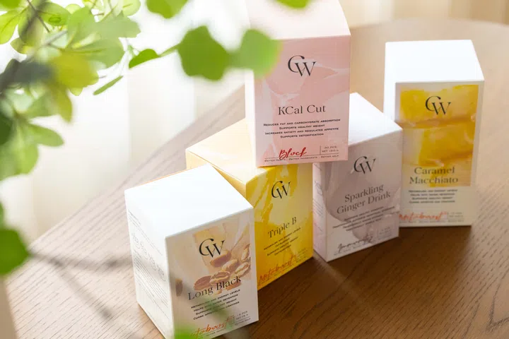核心产品如代谢三合一咖啡Triple B、阻断油脂吸收的KCal Cut、美白防晒的Good to Glow,以及促进胶原蛋白生成的Baby Face Collagen Jell-oh!,皆采用独家ProGloW®配方,有效提升吸收率与功效。产品形式涵盖粉剂、果冻、茶饮与即饮咖啡,方便融入繁忙生活。