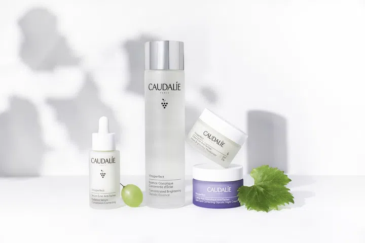 Caudalie 美白淡斑系列Vinoperfect含有天然葡萄蔓提取物与维他命C,能够抑制黑色素,包括淡化因怀孕荷尔蒙变化而形成的黑色素沉淀、痘印等,提升肌肤的亮泽度。它也加入了清新的柑橘花、橙树叶、西瓜和薄荷等综合香味,使用起来舒心怡人。