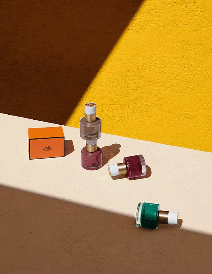 爱马仕彩妆(Hermes Beauty) 首次推出指甲油以及美甲护理系列Les Mains Hermes,一口气推出24个指甲油色号,24代表爱马仕自1880年开设的巴黎总店 Faubourg Saint-Honore的门牌。爱马仕指甲油含有高达71%自然配方,颜色则由皮革与丝巾调色师从品牌色彩资料库中精选,采用细致生物颜料搭配奈米科技,颜色鲜明饱满,只要涂一层即可。当中最受瞩目的两款颜色包括,诞生于1925年的爱马仕红 Rouge H以及诞生于1942年,代表品牌精神的标志性爱马仕橘Orange Boite。为了贯彻落实居家仪式感,爱马仕这次亦同步推出指甲打底油、亮甲油、指缘油、磨甲棒以及香氛护手霜,给予使用者完整的体验。设计延续Rouge Hermes 与Rose Hermes 风格,加入了标志图腾压纹瓶盖,搭配透明圆罐,内部色彩一览无遗,让奢华融入生活细缝里。
