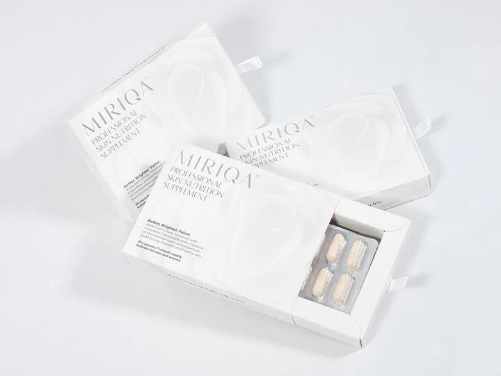 要让肌肤闪闪发亮,外用内攻双管齐下才能见效。 Miriqa 口服亮肤胶囊含有番茄和橄榄萃取以及可减少黑色素形成的半胱胺酸L-Cysteine,一天服用一粒,能够防御紫外线、抑制黑色素形成、抗发炎以及老化,让肌肤由内而外透亮美白。可通过https://miriqa.com购买。