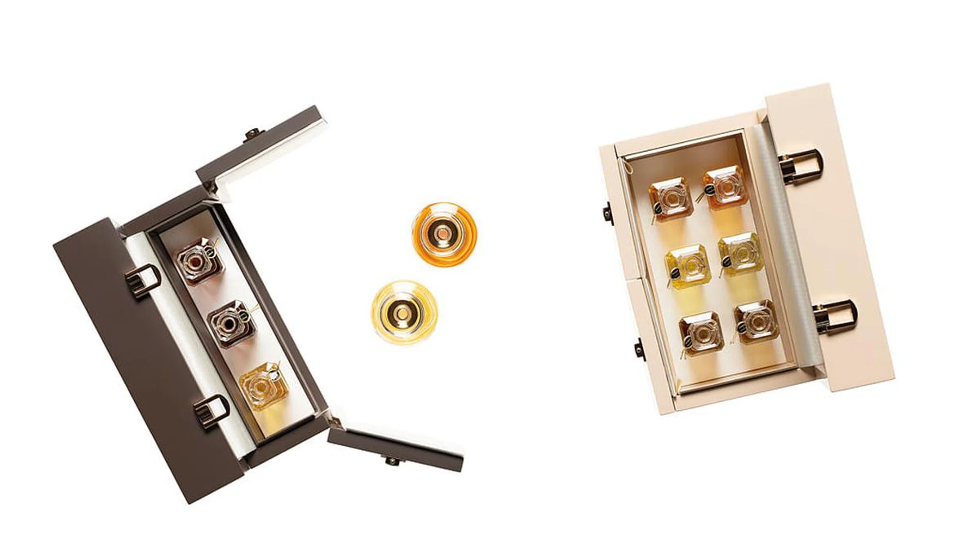 Henry Jacques 最新香水盒Les Boites à Parfums能够作为Les Classiques与Les Brumes scents两个香水系列的收纳盒,分为三、六与十瓶装三款设计。考虑到现代人喜爱多元搭配,推出了灰褐色、褐色、粉红色与米色四色供选。在设计方面也做到美感与实用性兼容,与香水相互呼应,简约内敛的设计与选色不哗众取宠,能够烘托水晶瓶设计的香水,让它们能够完整的展示出来,同时又能作为旅行的收纳盒,让客人带着喜爱的香水出国。Henry Jacques 与众不同的香水体验所带来的,岂是香味那么简单?