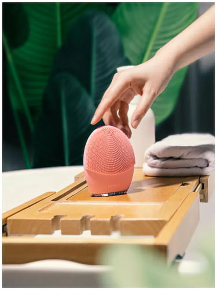 Foreo 第四代智能深层洁面仪能够根据使用者肤肌类型(预设为敏感肌、中型肌、混合肌)和问题区域量身定制清洁流程,更明确且快速的解决肌肤问题,洁面同时也紧致肌肤。临床实验证实,新一代洁面仪器的T-Sonic脉动和硅胶触点可有效去除99%污垢,油脂和化妆品残留物,比一般尼龙刷毛卫生35倍。