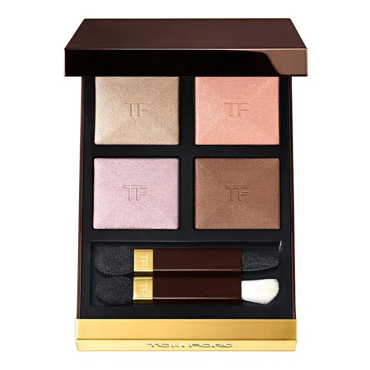Tom Ford的人气四色眼影盘,粉感细致高级,是许多彩妆迷的爱用物,今秋推出的新色之一#Rose Prisme,缎光质地闪耀迷人光芒,带着清透感的暖调配色,包含了香槟金、蜜桃色和棕啡色,配搭仙气飘飘的香芋紫色眼影,打造晨曦玫瑰般的寡淡温柔眼妆。