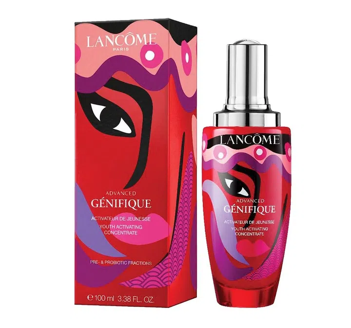 法国品牌Lancome 农历年限量版是超人气活肤精华液Advanced Genifique, 含有融入多种益生元、益生菌萃取物的精华可提升肌肤屏障,让肌肤更靓丽。以脸谱为主视觉,把中华文化融入设计里,看似虎也似人,非常吸睛。