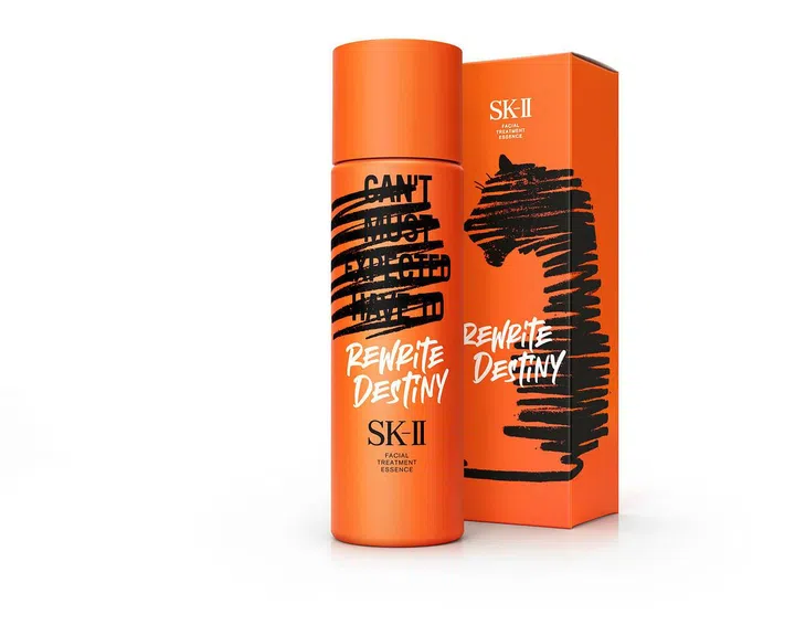 虎虎生威!日本保养品牌SK-II PITERA 青春露限定瓶以老虎橘为主色调,并以手绘条纹的方式绘上了老虎,看似抽象实则威严十足,既有创意又抢眼!SKII 青春露蕴含有超过90% PITERA,能够有效抗老,打造更细致娇嫩的肌肤。