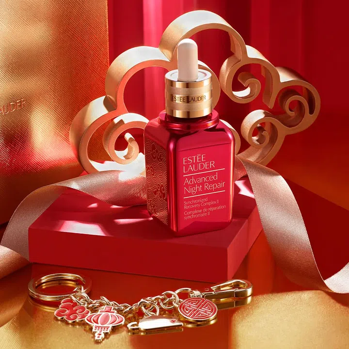 Estee Lauder没有让米奇上身,反向传统取经,以祥云图案装饰唇膏管与Advance Night Repair瓶身,让你一边美肤,一边接纳好运。重点是,Advance Night Repair还附上祥云、灯笼、金鼠等的钥匙圈,美不胜收。