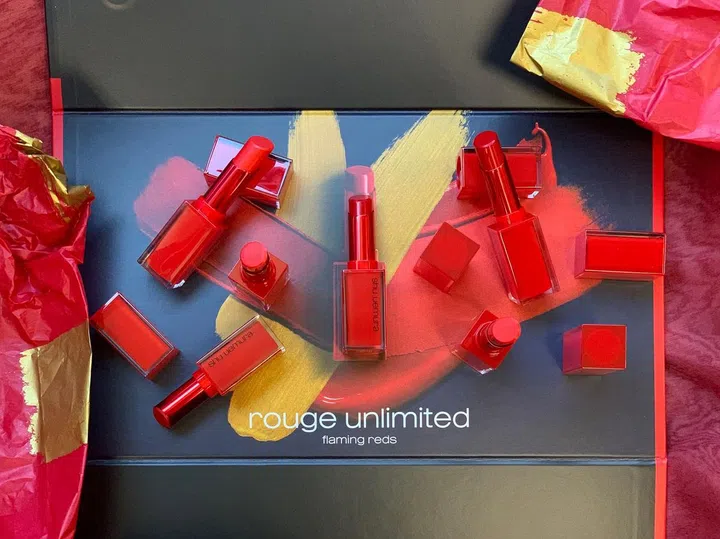 Shu Uemura以人气唇膏RD 163跟大家拜年!一口气推出全红包装,Amplifiled 、Matte、Lacquer Shine与Glitter Matte等不同质地的唇膏,让你从初一红到元宵。