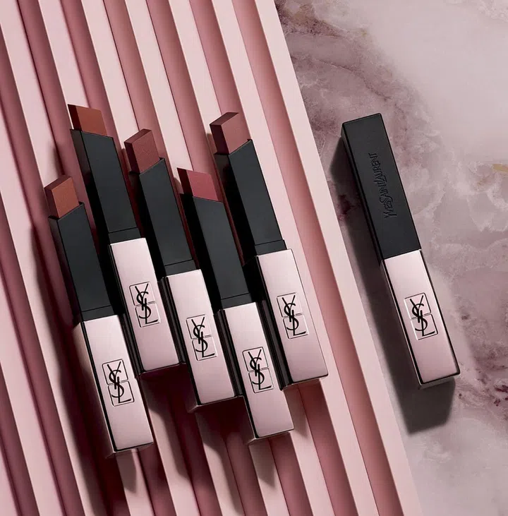 YSL Beauty 之前推出小金条、小银条唇膏都获得好评。全新The Slim Glow Matte 换上了玫瑰金包装,依然高雅。丝绒般的华丽感,细致但不干燥,皆因加入微珍珠末与锦葵提取物,具有高度保湿度。新一季的小粉条干燥玫瑰色系202与213色号都能够让妩媚升级。你可通过YSL Beauty 门市或专柜、Sephora.sg、Isetan.com.sg 或BHG.com.sg 购买。