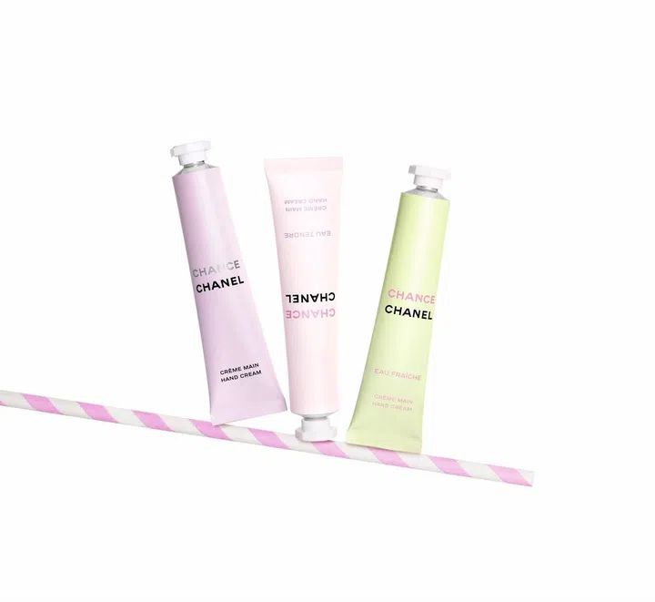 Chanel Beauty 旗下CHANCE香水系列限定护手霜,延续香水厚活泼的色系为包装,三款护手霜也分别散发出CHANCE、CHANCE Eau Fraiche 以及 CHANCE Eau Tendre的香气。此护手霜质地轻盈细腻,能够瞬间被肌肤吸收,为双手提供滋润的同时不留粘腻感。