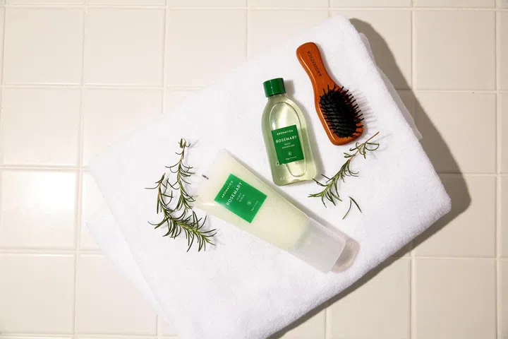 这个夏天,品牌强打的迷迭香头发护理系列,采用天然草本原料,不会伤害头皮,也不会留下扰人的粘腻感。AROMATICA Rosemary Scalp Scrub去角质霜加入了安第斯山脉湖盐(Andean lake salt)以及迷迭香精油,能够温和清理头皮,而AROMATICA Rosemary Root Enhancer护发油添加了七种维他命、六种黑色食物精粹以及迷迭香精油,从发根滋润秀发。