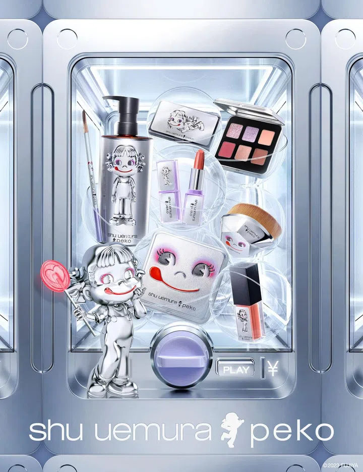 植村秀Shu Uemura 向来热衷联乘,次次破格都能引起抢购热潮。这一季,品牌与不二家PEKO一起带来一系列卡哇伊满分的产品。全系列银色包装,表面印上PEKO,又酷又萌!这次的唇膏、唇釉甚至眼彩盘都可以闻到淡淡的牛奶香。而,眼彩盘更搭上Y2K热潮,糖果色系让女孩们过一个甜腻腻的夏日。