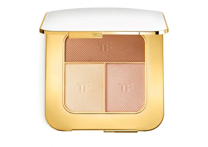 古铜色的健康肤色是夏天的代表色。这一季Tom Ford Beauty 彩妆系列Summer Soleil 推出数款单品,除了唇膏、身体油等,也包括了三色修容彩盘,包括金色、铜色色以及浅珊瑚色,金粉质地能够打造Sun kiss式的金灿灿自然妆容。