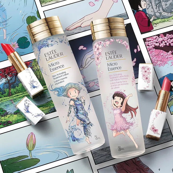 雅诗兰黛(Estée Lauder) 的微生精华露是品牌的人气商品,它的能够当作前导精华使用,能够稳定肌底、有效抚褪干纹、细纹,让肌肤更细致平滑,促进后续产品吸收。品牌与旅居日本的瑞典漫画家Åsa Ekström 合作推出限定款,一共两个设计,一为戴者花圈身穿粉红裙张开手欢舞的小女孩,另一则是充满力量与水漾女孩,同样卡哇伊!