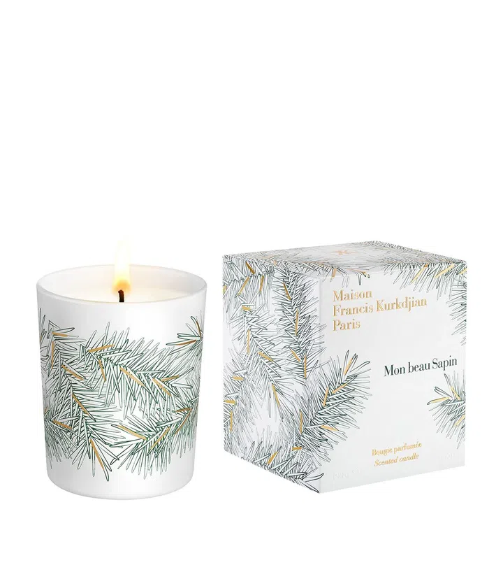 Maison Francis Kurkdjian 延续过往传统推出圣诞香氛蜡烛,洁白的玻璃瓶犹如皑皑白雪,绘上圣诞树针叶,让人轻易就感受到浓浓的圣诞气息。它发出淡淡的冷衫树香味,恍如室内放置了圣诞树的感觉,让人迷醉。