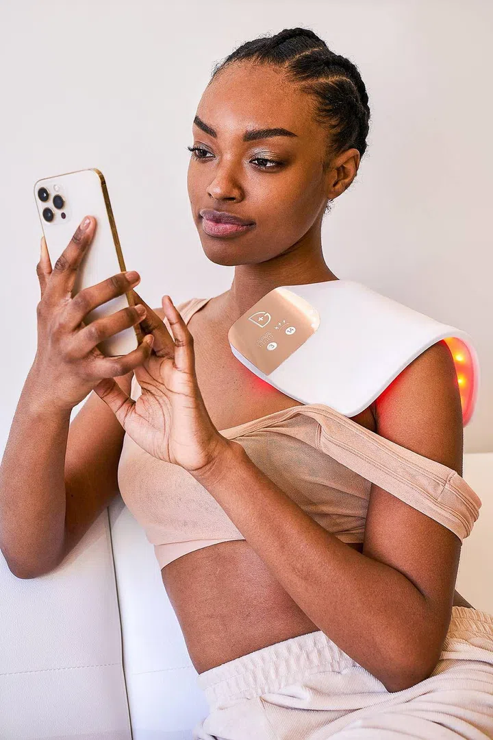 著名美容医生品牌Dr. Dennis Gross推出首个身体保健仪器DRx SpectraLite™ BodyWare Pro。它属于光感治疗,含有148个红灯与68个蓝光设计,每次使用三分钟,光源会渗透到肌肤底层刺激胶原蛋白增生。同时具备14分钟疗程舒缓炎症和疼痛,可弹性使用于身体各部位。