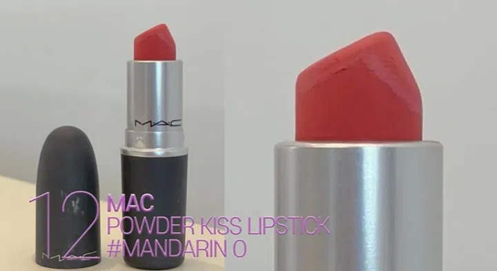 MAC的这款哑光质感唇膏#308 Mandarin O是她的“真爱口红”,她笑言因为经常使用,口红膏体都被她用得变形了。夏日感的西柚红色,让脸部瞬间提亮,虽是哑光质地,但上唇不会致干,她特别推荐给想要尝试哑光唇膏的新手。