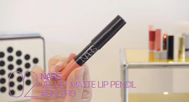 Nars丝绒唇笔是品牌的明星产品之一,其中豆沙粉的#Dolce Vita和红棕色的# Walkyrie都是人气色号。Jessica爱用的这款#Bolero Velvet是奶油蜜桃色,属于相当冷门的色号。她通常用这款唇笔作为打底色,与其他任何口红都能叠擦,提亮色泽,让双唇看起来更丰盈。