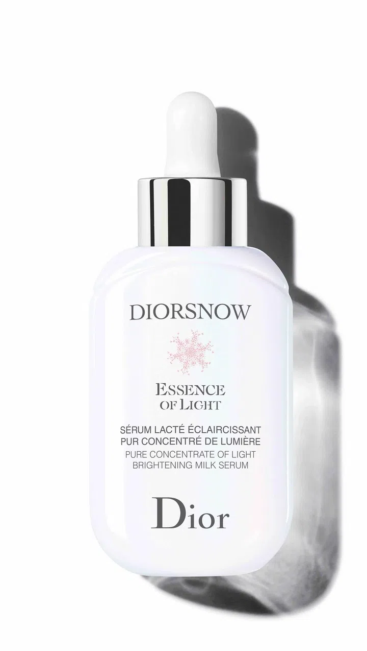 Dior 美白精华Snow Essence of Light 采用“自体光肌”光学润色技术,同时加入雪绒花萃取除了强调亮白效果,同时具有卓越保湿效果,让肤色不只白皙也更加均匀。