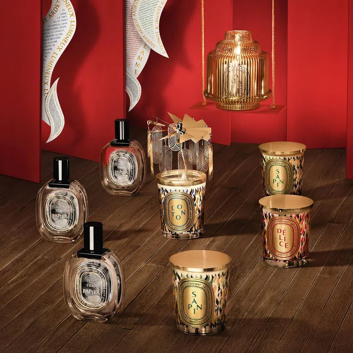 Diptyque 以火焰为主题,让大家在冷冷的冬日带来温暖。但是要如何表达火焰呢?品牌擅长从插画与图腾描绘的方式化虚为室,将每年的圣诞限定香的烛杯换上了火焰图腾,同时延续过往的红、绿与蓝主要配色。除了期望为冬日带来温暖,品牌也希望皆由主题为人们撒来希望的种子,让蜡烛燃烧时所产生的摇曳影子和暖光,创造愉悦与感性的氛围,像火焰一样缓缓地、暖暖地萦绕着四周。