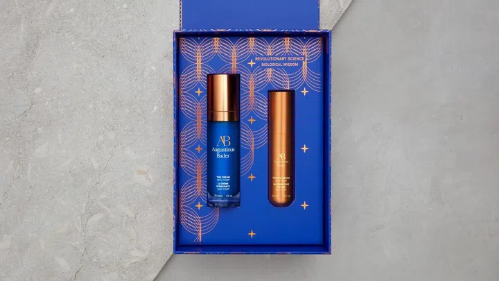 德国革命性高端美容品牌Augustinus Bader 在家姐推出三款礼盒,包括:The Renewal Icons with The Cream、The Renewal Icons with The Rich Cream 以及The Winter Radiance System。 礼盒采用品牌标志性蓝色包装,以及金铜色细描图腾,高贵典雅又不失喜庆之意。The cream 面霜的核心成分含有独家研发的细胞触发因子TFC8,可促进皮肤细胞焕活,逆转老化肌肤,重焕年轻肤况。
