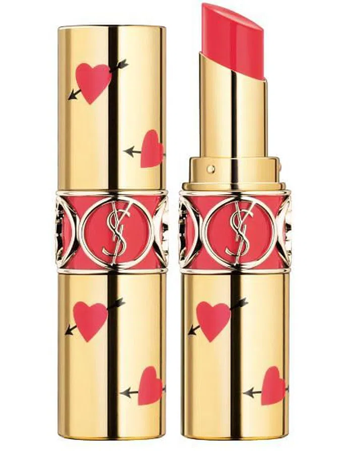 YSL特别为情人节推出的Rouge Volupte Shine限量唇膏组,在金色唇膏管上印制了爱神的箭与爱心限量,让人看了心花朵朵开。推荐带点桃色的#12, 淡淡、薄薄的色泽,让双唇水润欲滴,自然又不做作。