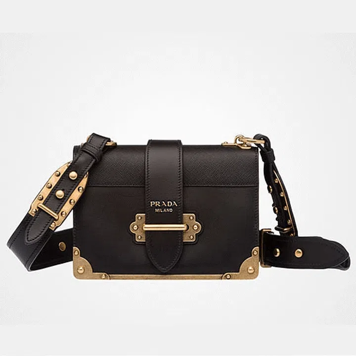 Cahier是法语中簿子的意思,这款Prada手袋在2016年秋季面世,从此成为时尚族的It bag。设计灵感来自古董书,盒子造型经典又现代。品牌的Resort 2018系列采用美国华人艺术家James Jean的图纹设计,明亮大胆,但我们认为原版的黑色皮革款式,更能够经得起时间考验,成为未来的经典。