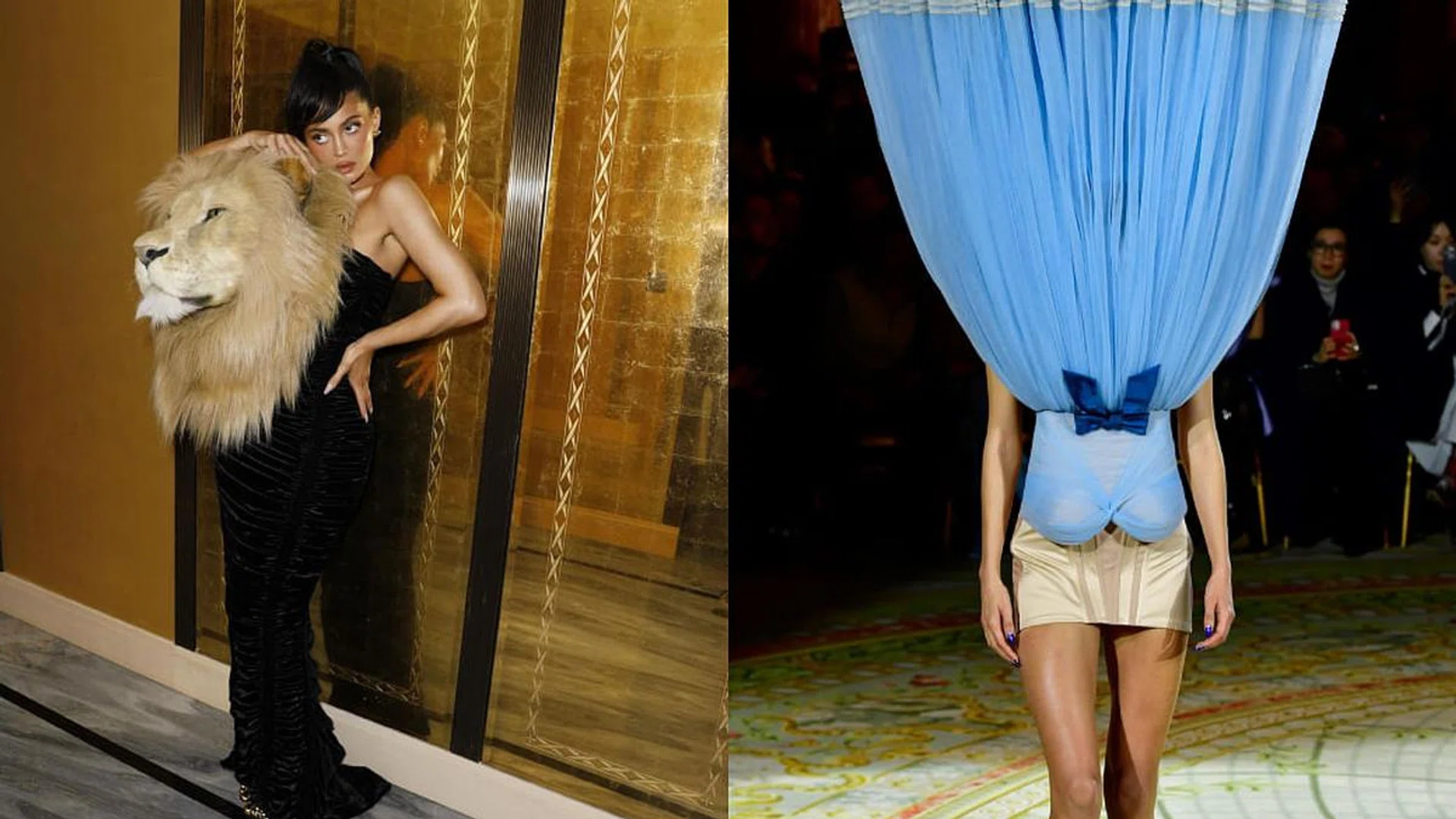 2023春夏巴黎高定时装周由Schiaparelli开启,人们对其全新的超现实作品大受震撼以外,亦有不少动物保护主义者因Shalom Harlow、Irina Shayk、Naomi Campbell 等名模在伸展台上所演绎的狮子头、豹子头等动物头配饰过于逼真而对品牌进行抨击。然而,高定品牌Schiaparelli指出此狮头是用泡棉、羊毛及其他仿皮草材质所制,强调”没有动物因此受到伤害“。