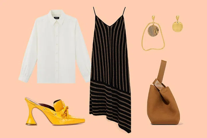 手袋: Striped crinkled leather tote bag by Balenciaga, £855 (S$1,504), via Net-a-Porter
