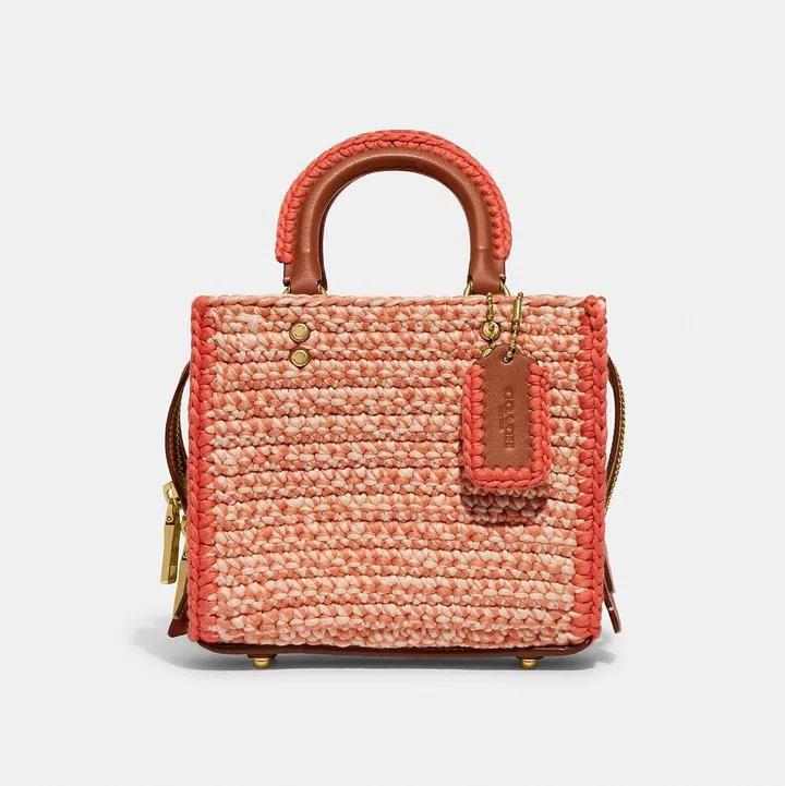 藤编手袋的历史可追溯至1940年代,本季在运用在Coach Rogue手袋上,工匠需将藤条编制成手袋造型并进行防霉处理,再组装上皮革手柄、外置拉链、马车图案吊牌、金属脚钉等零件,每只包包耗费工时达33个小时。