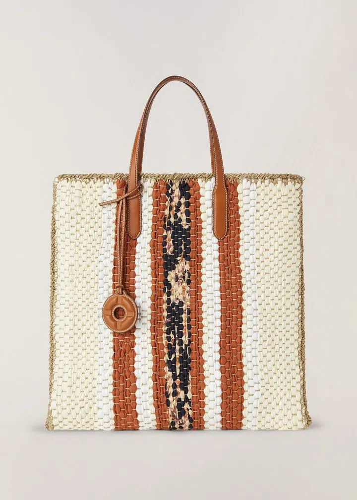 出自Loro Piana度假系列的Blossom手袋运用亚麻与桑蚕丝混纺织物制成,以轻巧多功能的平面设计营造出多姿多彩的风格。手工织机编织的饰带创造出多色竖状条纹,契合中间的花卉印花织物装饰,让这款手袋格外引人注目。