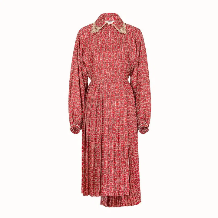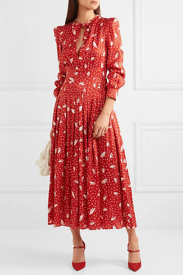 一件红底白印花的连身裙,轻松解决国庆节穿搭的烦恼。这款真丝提花裙身上覆满波点和花瓣图案的Alessandra Rich连身裙出自品牌2019秋冬系列,带有浓浓的 40 年代韵味,不妨搭配高跟穆勒鞋及一款缀饰手提包,一展女人的温柔妩媚。