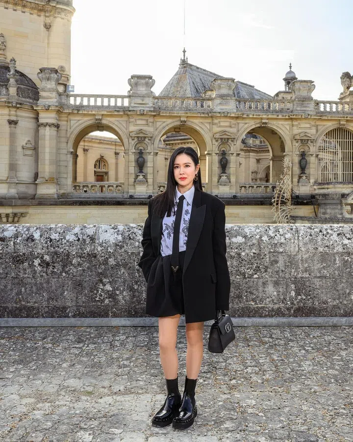 时尚2023/24巴黎高定时装周前排明星2023/24秋冬巴黎高级定制时装周从7月3 日至6日举行,迪奥、香奈儿和华伦天奴等高定时装屋邀请了多位海内外明星盛装出席,一起来看这些前排嘉宾的华丽衣装。文 / Hayley Zhang Yujie / 7 Jul 2023celebrities, fall winter, fashion, haute couture, Paris Haute CoutureShare this articleValentino 2023秋冬高级定制系列发布会Valentino1/10产后复工的孙艺珍身穿Valentino 23/24秋冬Black Tie系列造型,搭配Valentino Garavani鞋履及手袋。Dior 2023秋冬高级定制系列发布会Dior 2/10Dior品牌大使杨采钰身穿Dior 2023早秋系列丝缎抹胸上衣搭配半身裙,佩戴Rose des Vents项链、Dior包包和鞋子。Dior 2023秋冬高级定制系列发布会Dior3/10菲律宾第一名媛Heart Evangelista身着Dior 2023春夏系列黑色蕾丝连衣裙,搭配Dior手袋和高跟鞋。Fendi 2023秋冬高级定制系列发布会Fendi4/10中国演员李沁身着Fendi2023秋冬系列女士白色长袖上衣搭配不规则半身裙,脚踩Fendi白靴,手提Peekaboo手袋。Fendi 2023秋冬高级定制系列发布会Fendi5/10泰国演员Bella Ranee Campen身穿Fendi双色针织长款连身裙,搭配品牌新款C'mon手袋。Balenciaga 第52季高级定制发布会Balenciaga 6/10奥斯卡影后杨紫琼身穿Balenciaga亮黄色褶皱飘逸礼裙,搭配银色水钻沙漏包现身秀场。Balenciaga 第52季高级定制发布会Balenciaga7/10泰国演员PP Krit Amnuaydechkorn身穿一袭Balenciaga全黑色西装,帅气现身巴黎出席巴黎世家大秀。Balenciaga 第52季高级定制发布会Balenciaga8/10中国演员刘昊然身穿Balenciaga黑色卫衣外搭宽松长夹克,看起来酷劲十足。Balenciaga 第52季高级定制发布会Balenciaga9/10中国模特奚梦瑶梳起利落长发,身穿Balenciaga潇洒皮革大衣,演绎cool女孩形象。Chanel 2023秋冬高级定制系列发布会Chanel10/10品牌形象大使陈伟霆身穿白衬衫搭配亮片长裤,清爽亮相香奈儿大秀。celebrities, fall winter, fashion, haute couture, Paris Haute CoutureShare this article