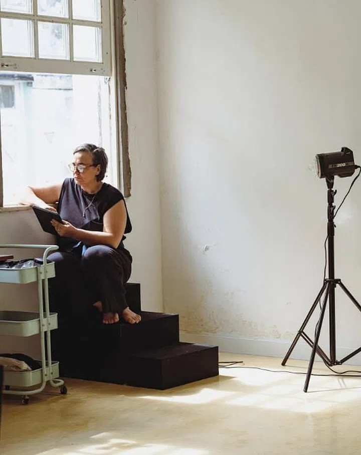 碰触自身的脆弱面是令人着迷的,同时也是让人害怕的。 我意在展示我自己或我所扮 演的人物的裂痕。 我创造 Judas Companion 的初衷是为了保护自己免受因社会及周围 人的冷酷粗暴而带来的脆弱和伤害。 现在我反其道而行之,创作关于内心挣扎的作品。 结合我的天性,以及针对人类的起源、诱惑和堕落发表评论,我拍摄人的裸体(主要是我自己),通常只遮住脸,用怪诞的由针织、羊毛、再生材料、茸毛、塑胶或陶瓷 制成的面具遮掩面部表情。 通过裸体主义,我能够在表达人类脆弱的同时,展现人体的美丽。 ”