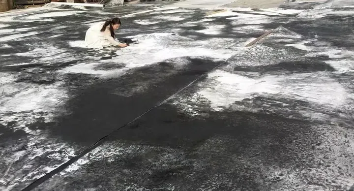 “我使用我自己的艺术专案《峨眉飞瀑》中的材料和工艺流程,将婚纱设计为从女人身上倾流而下'的瀑布。模特/新娘走在红毯上,裙子会从身上垂落散开。在到达礼坛前的最后一刻,她的身上只留有一件‘内衣’裙。”